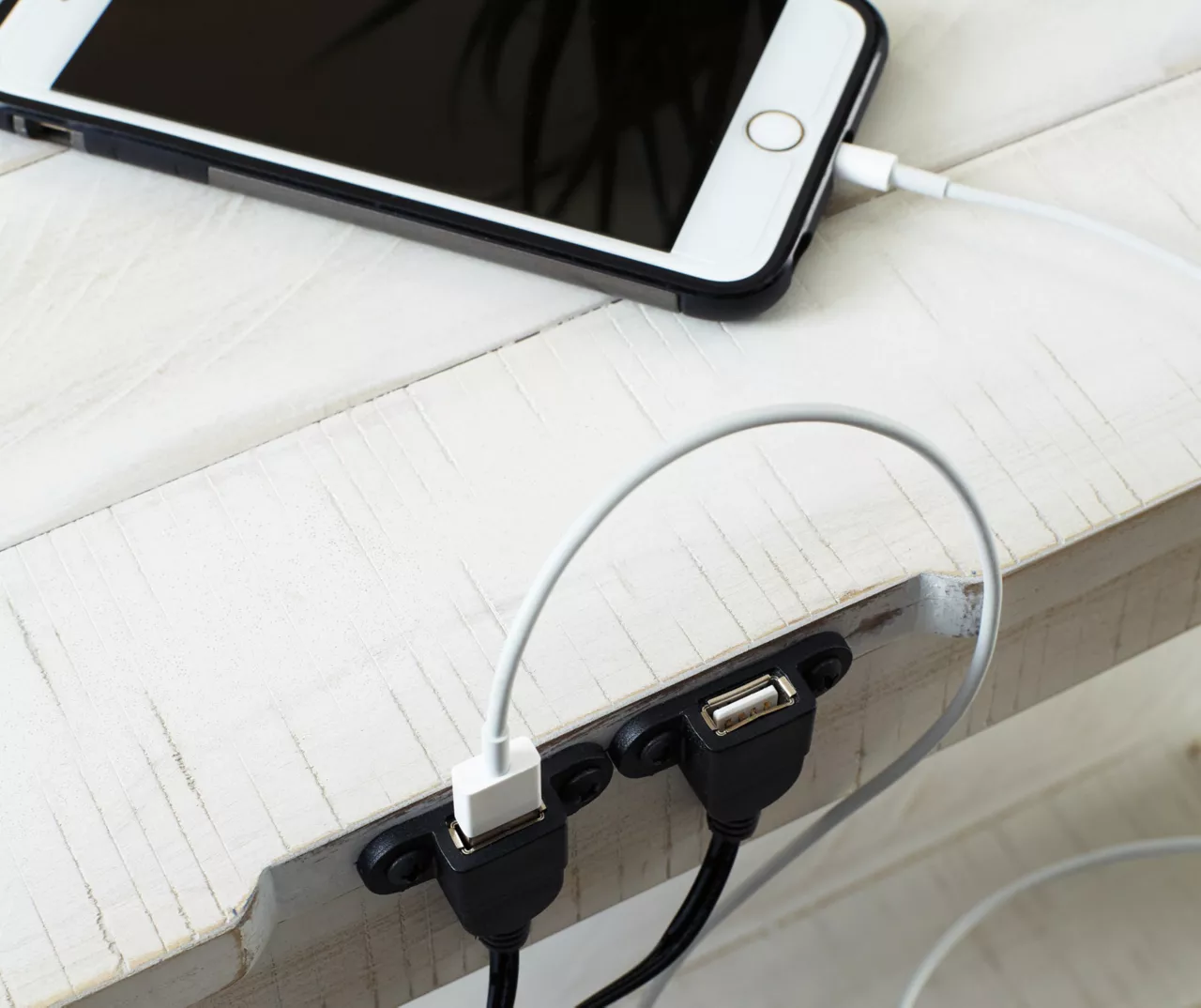 - Offers 2 slim-profile USB ports with power cord for charging devices