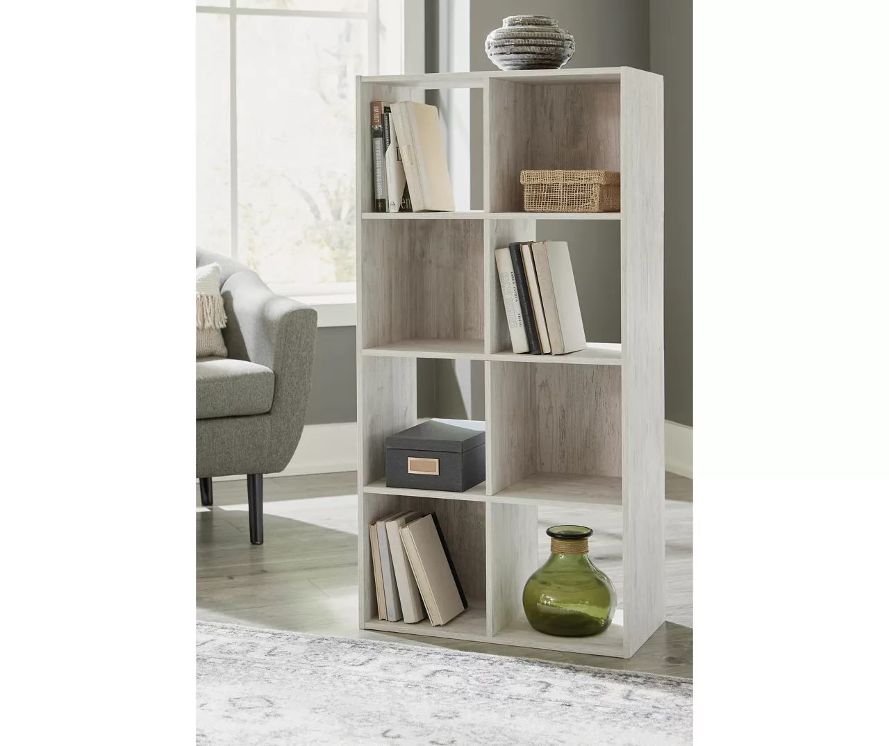 If it’s coastal chic or cottage quaint style you long for, the Paxberry whitewashed eight-cube organizer invites you to go to town. Its distinctive weatherworn finish conveys an easy-breezy sensibility, perfect for a restful bedroom retreat. Open and closed backs make it abundantly practical.