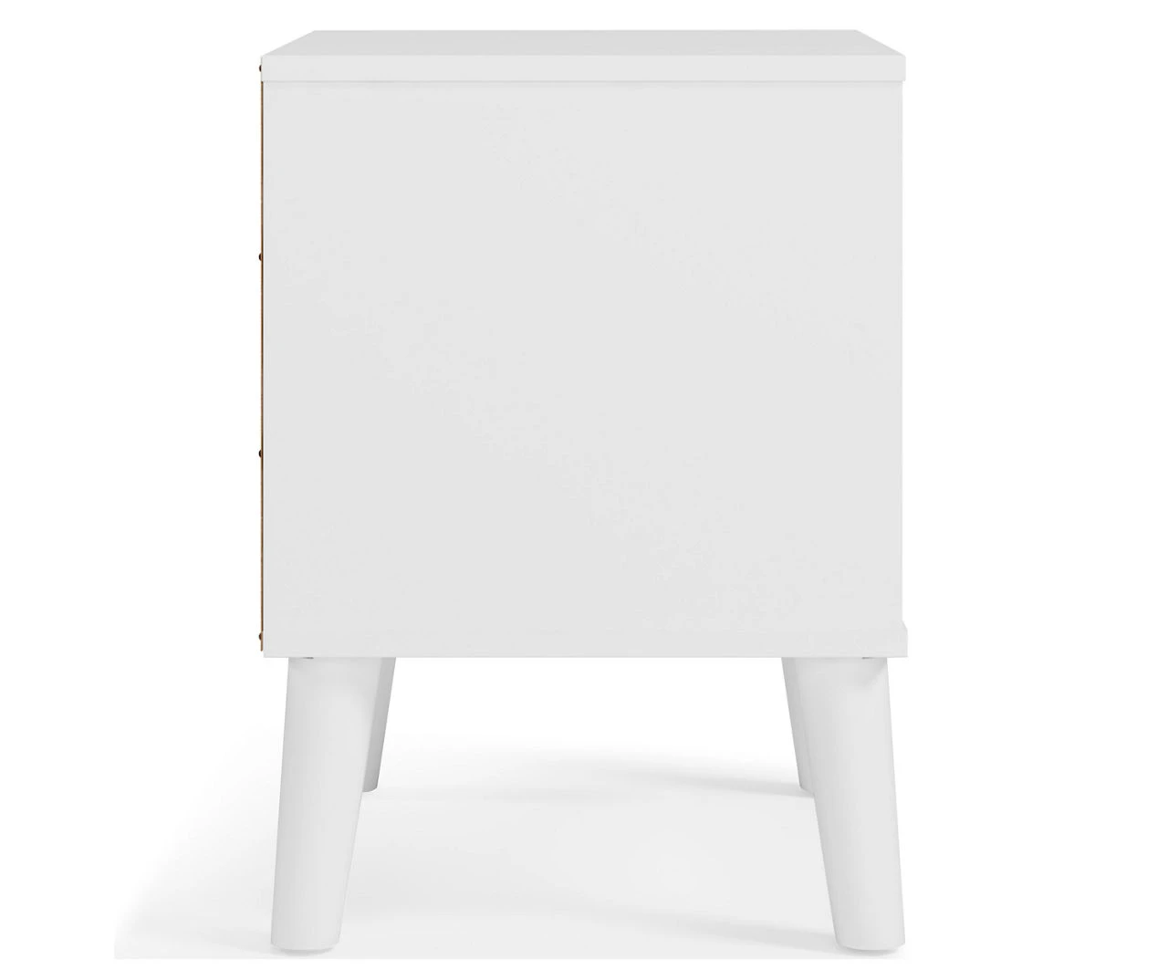 - Smooth-gliding drawer and open cubbies for bedside storage